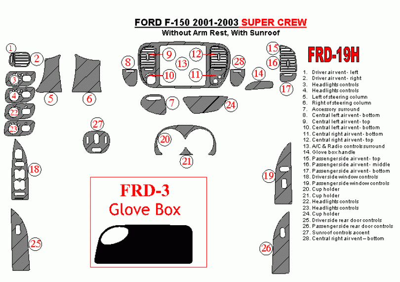 Ford F-150 Super Crew 2001 - 2003 Dash Trim Kit