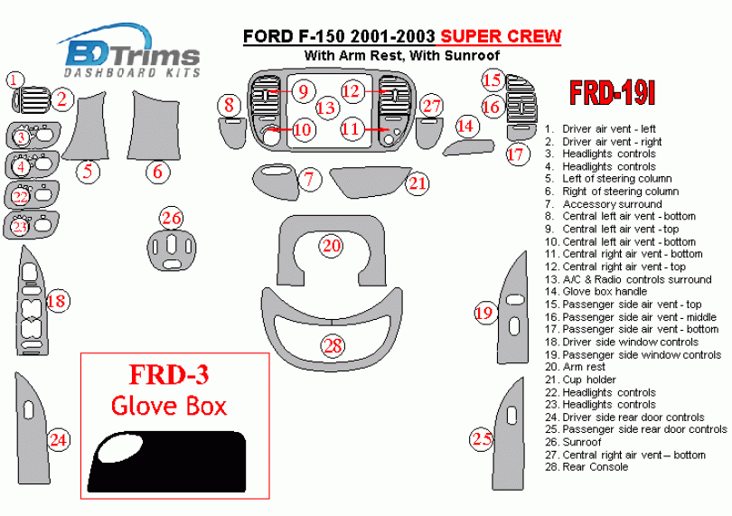 Ford F-150 Super Crew 2001 - 2003 Dash Trim Kit