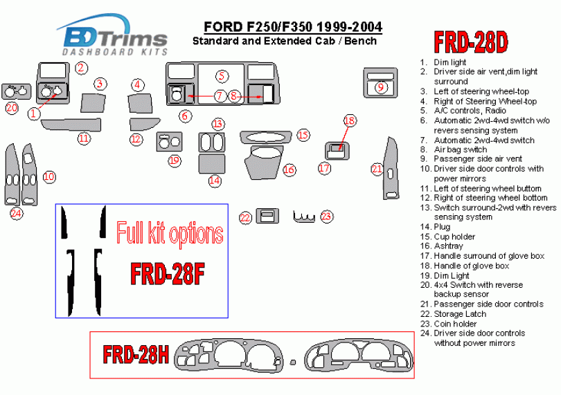 Ford F-250/350/450/550 1999 - 2004 Dash Trim Kit