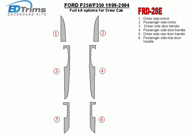 Door panels and mirror accents for Crew Cab, 6 Pcs.Materials
