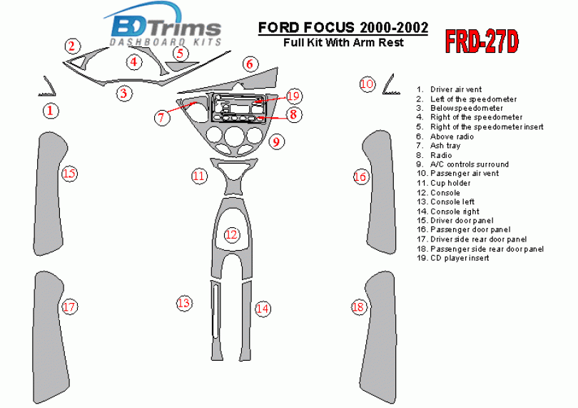 Ford Focus 2000 - 2002 Dash Trim Kit