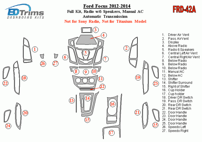 Ford Focus 2012 - 2014 Dash Trim Kit