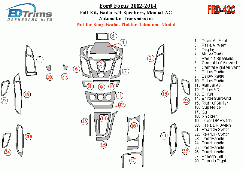 Ford Focus 2012 - 2014 Dash Trim Kit