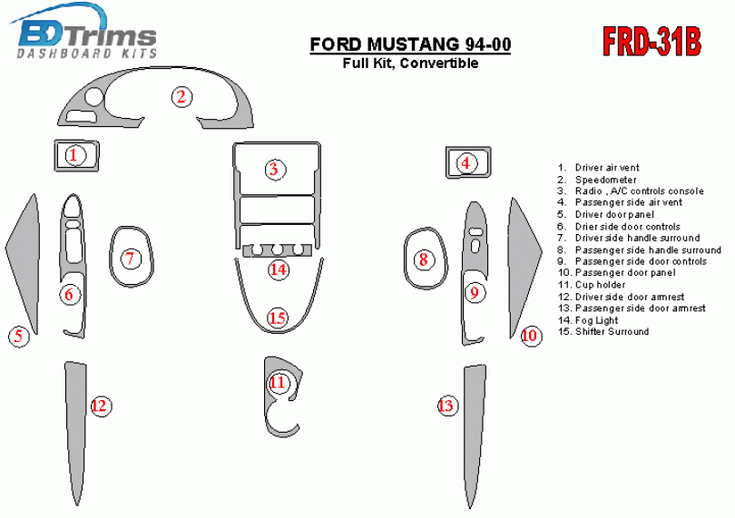 Ford Mustang 1994 - 2000 Dash Trim Kit