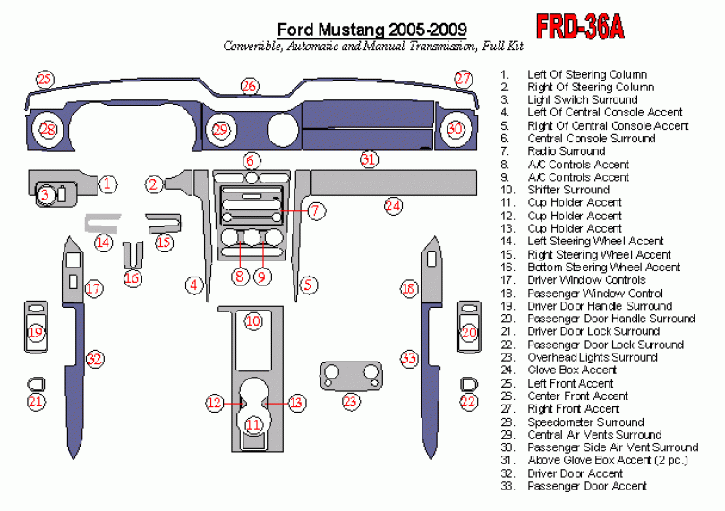 Ford Mustang 2005 - 2009 Dash Trim Kit