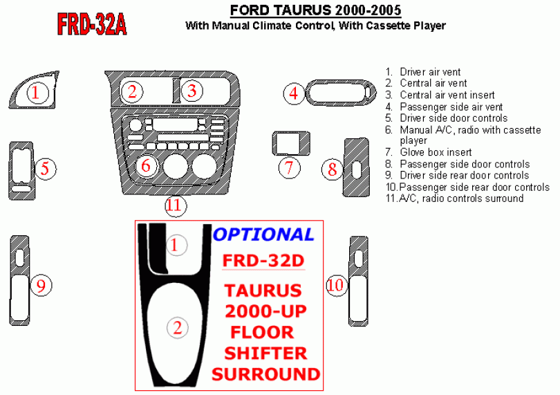 Ford Taurus 2000 - 2005 Dash Trim Kit