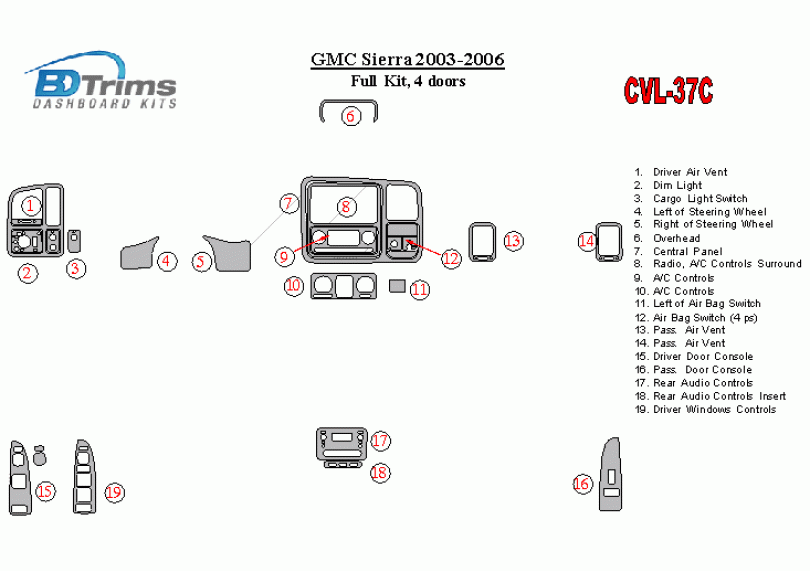 GMC Sierra 2003 - 2006 Dash Trim Kit