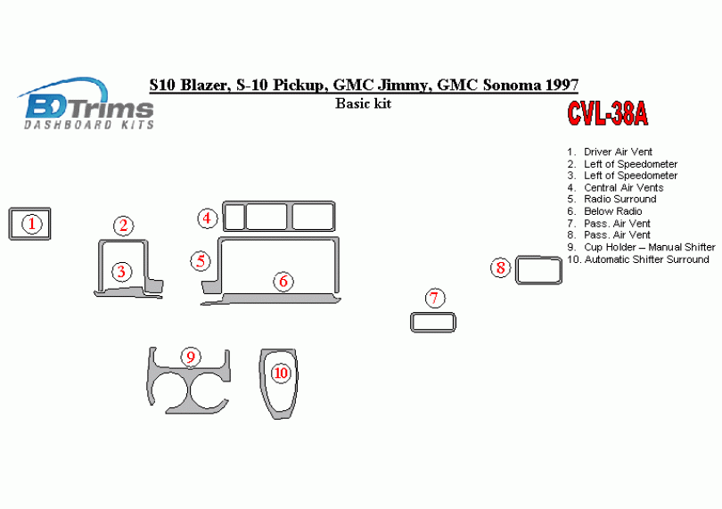GMC Sonoma 1997 - 1997 Dash Trim Kit