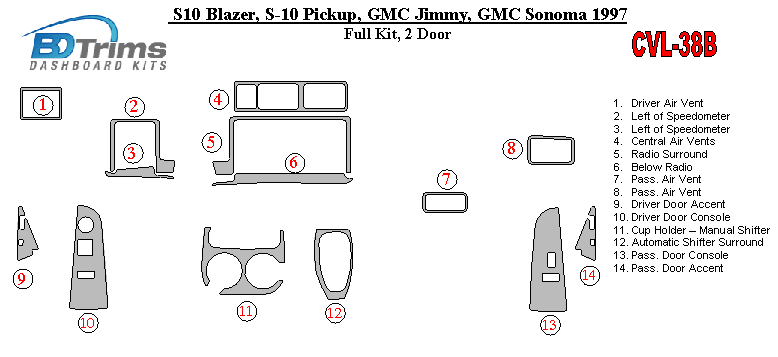 GMC Sonoma 1997 - 1997 Dash Trim Kit