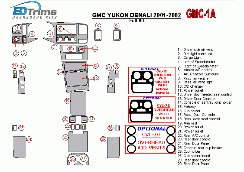 GMC Yukon Denali 2001 - 2002 Dash Trim Kit