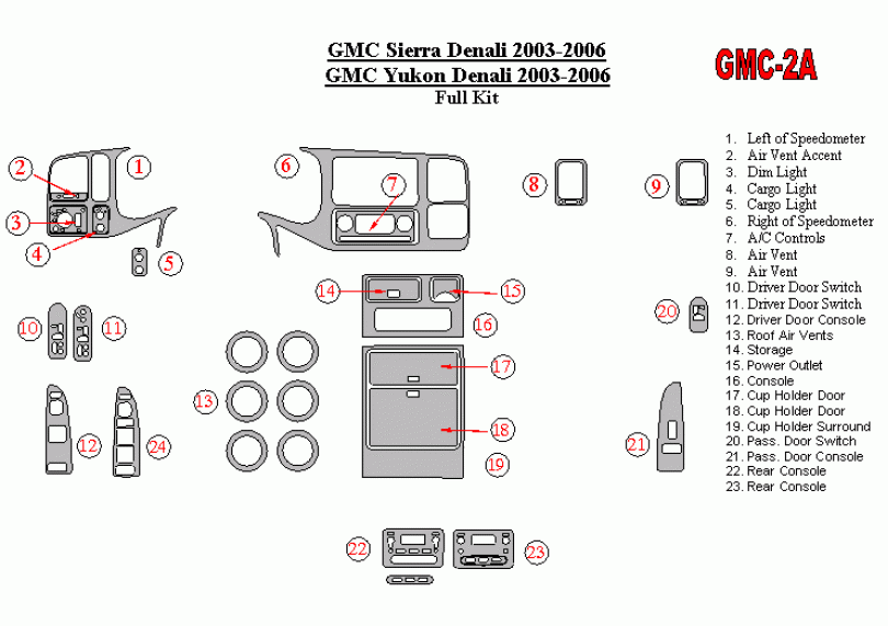 GMC Yukon Denali 2003 - 2006 Dash Trim Kit