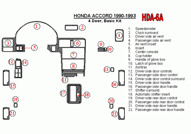 Honda Accord 1990 - 1993 Dash Trim Kit