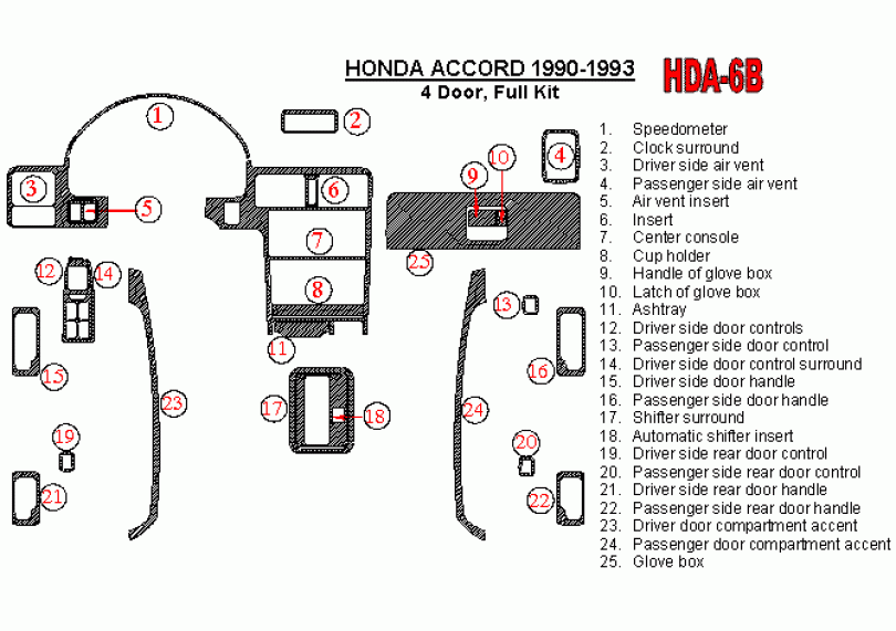 Honda Accord 1990 - 1993 Dash Trim Kit