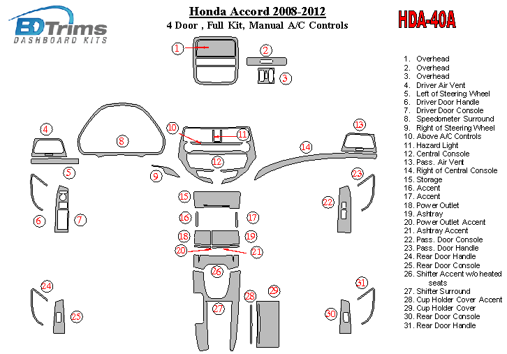 Honda Accord 2008 - 2012 Dash Trim Kit