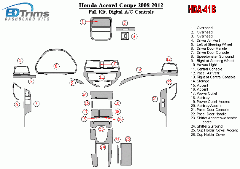 Honda Accord 2008 - 2012 Dash Trim Kit
