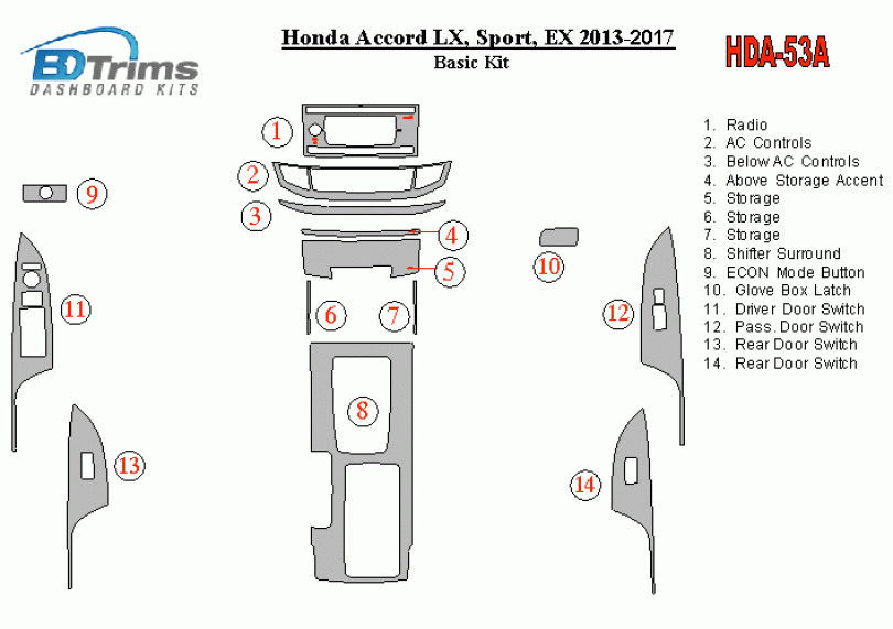 Honda Accord 2013 - 2017 Dash Trim Kit