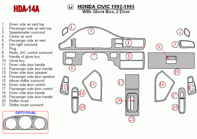 Honda Civic 1992 - 1995 Dash Trim Kit