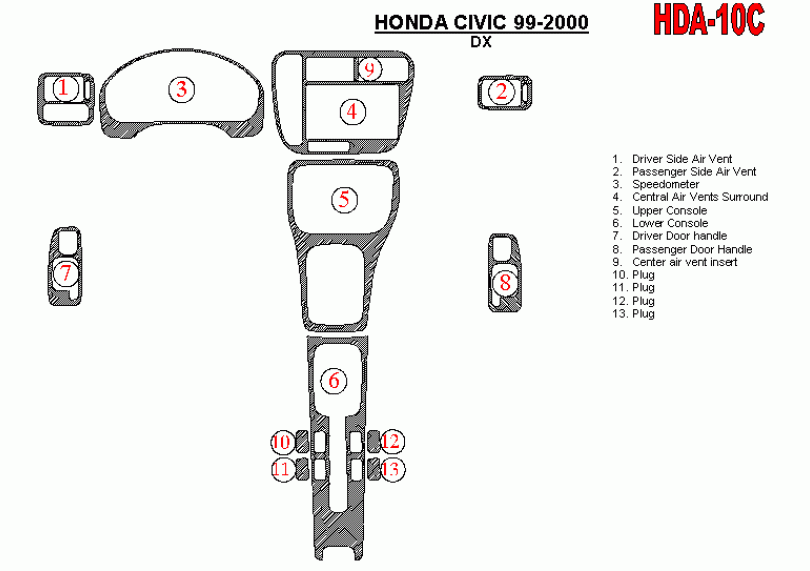 Honda Civic 1999 - 2000 Dash Trim Kit