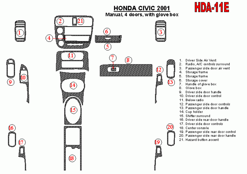 Honda Civic 2001 - 2001 Dash Trim Kit
