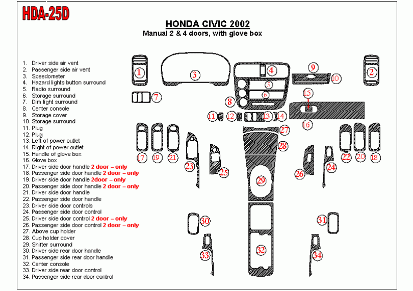 Honda Civic 2002 - 2002 Dash Trim Kit