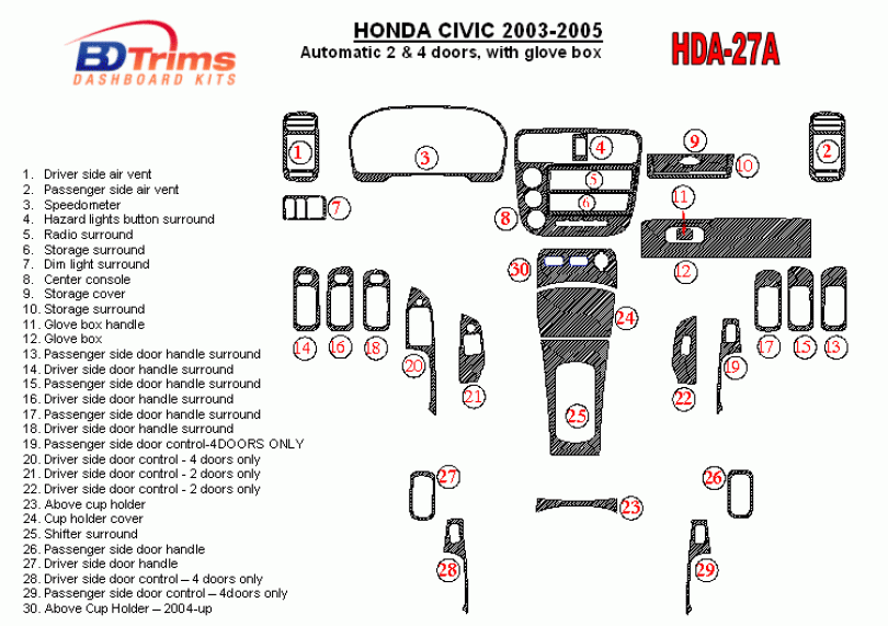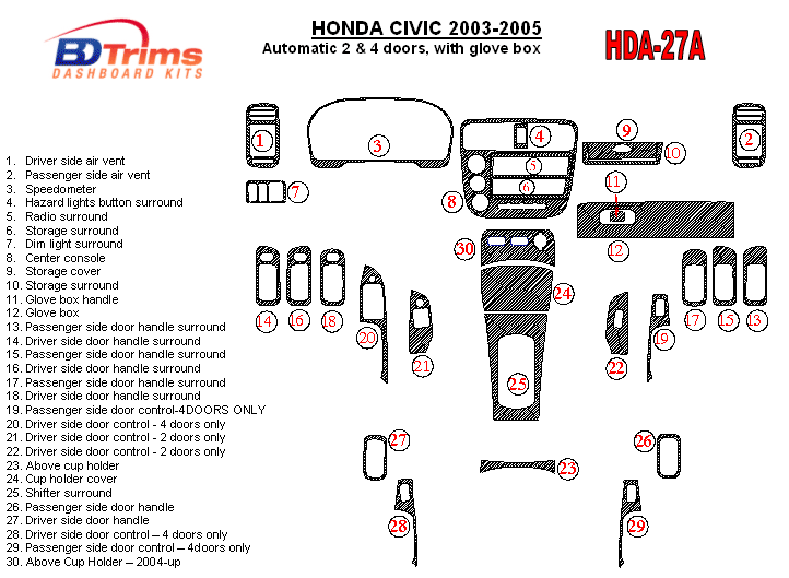Honda Civic 2003 - 2005 Dash Trim Kit