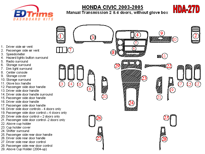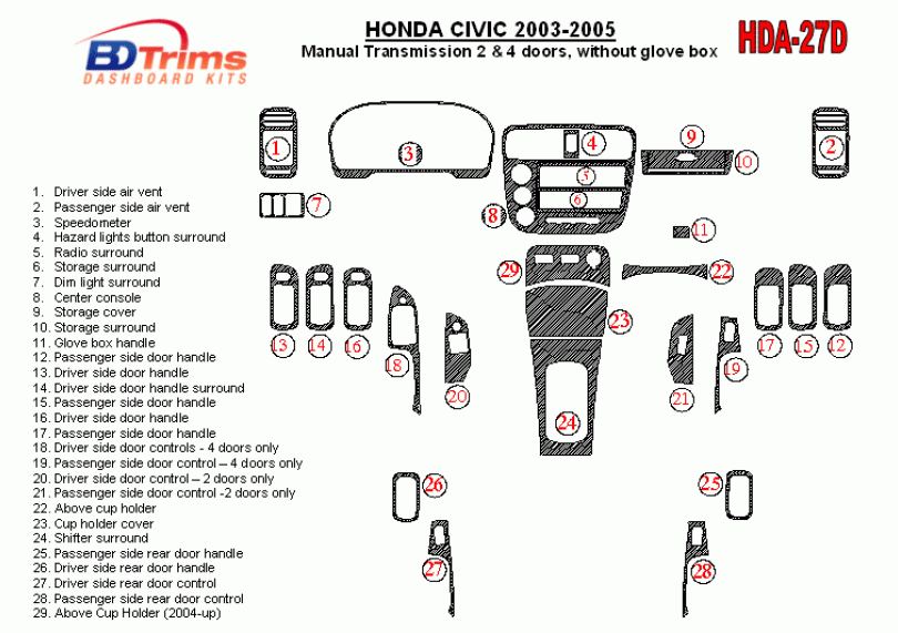 Honda Civic 2003 - 2005 Dash Trim Kit