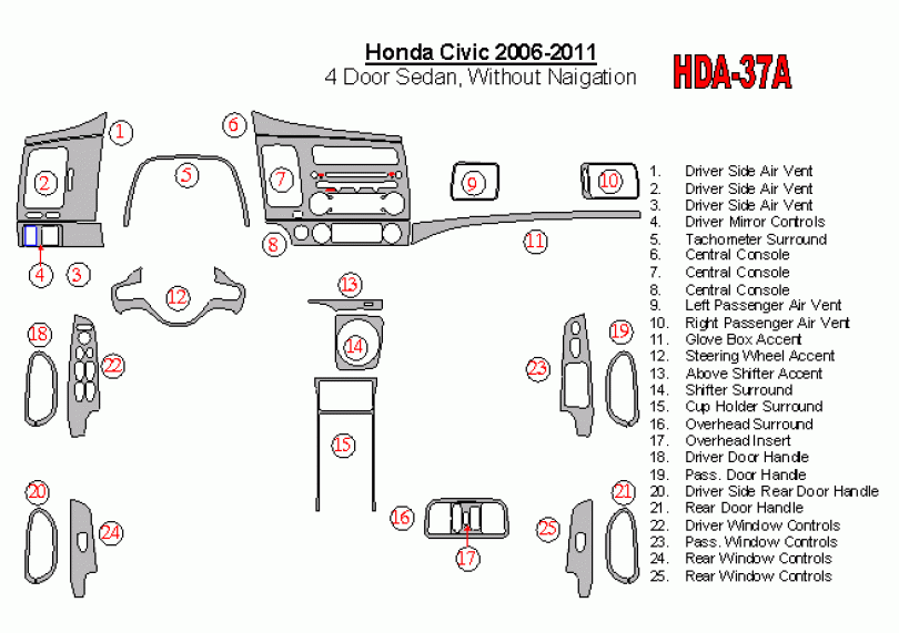 Honda Civic 2006 - 2011 Dash Trim Kit