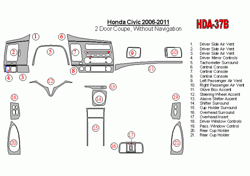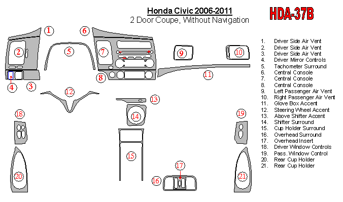 Honda Civic 2006 - 2011 Dash Trim Kit