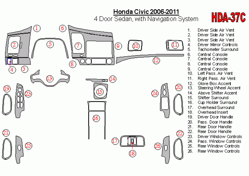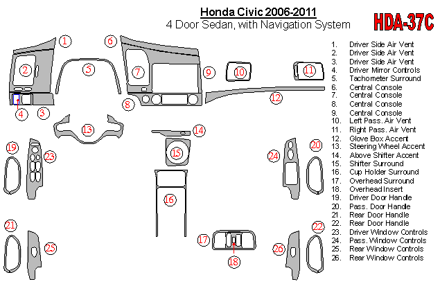 Honda Civic 2006 - 2011 Dash Trim Kit