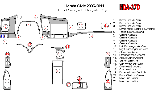 Honda Civic 2006 - 2011 Dash Trim Kit