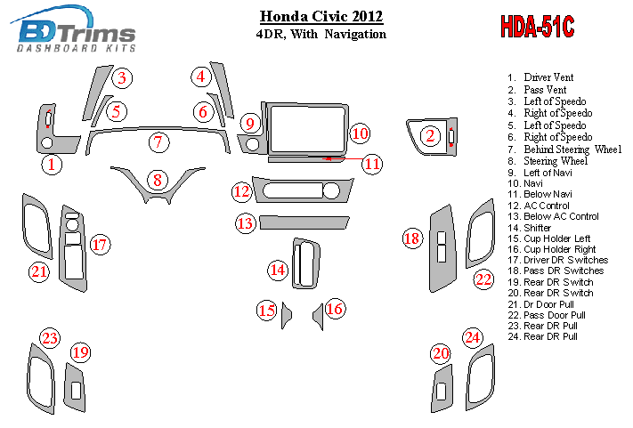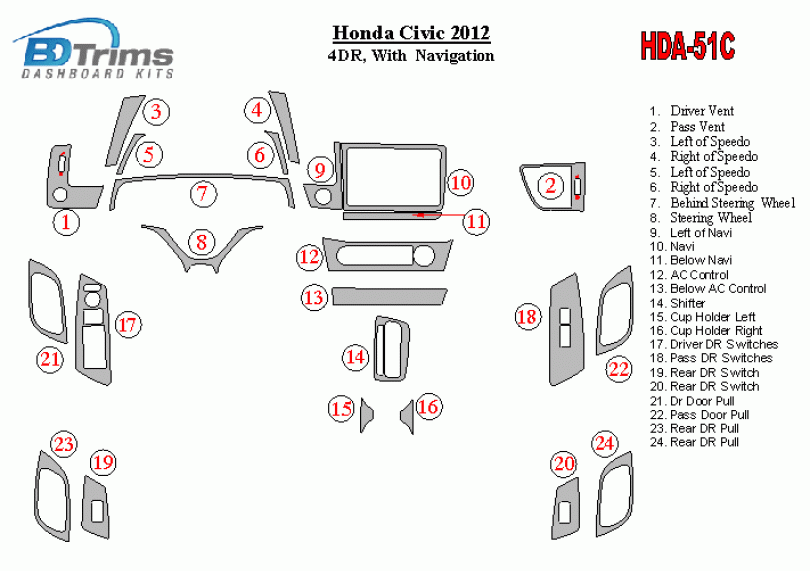 Honda Civic 2012 - 2012 Dash Trim Kit