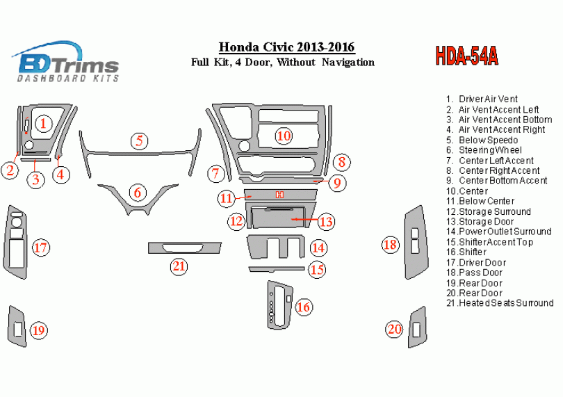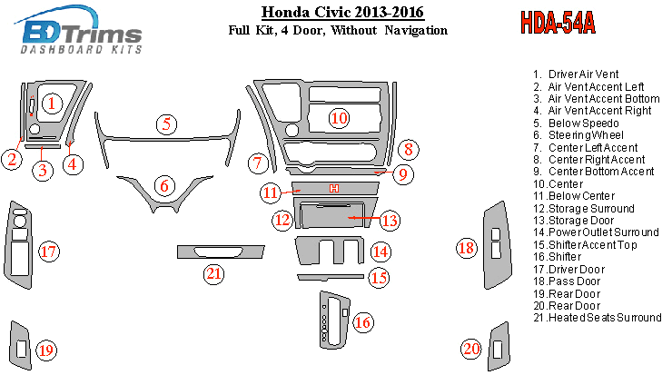 Honda Civic 2013 - 2015 Dash Trim Kit
