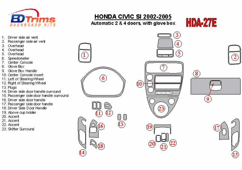 Honda Civic SI 2002 - 2005 Dash Trim Kit