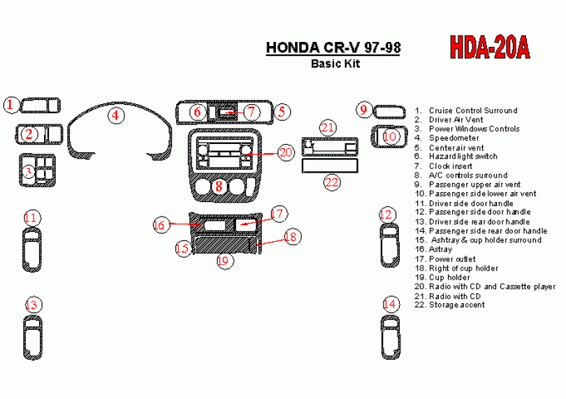 Honda CR-V 1997 - 1998 Dash Trim Kit