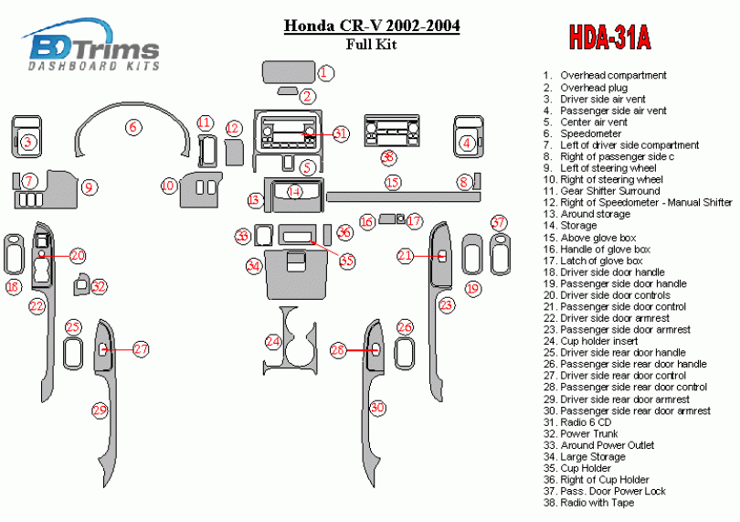 Honda CR-V 2002 - 2004 Dash Trim Kit