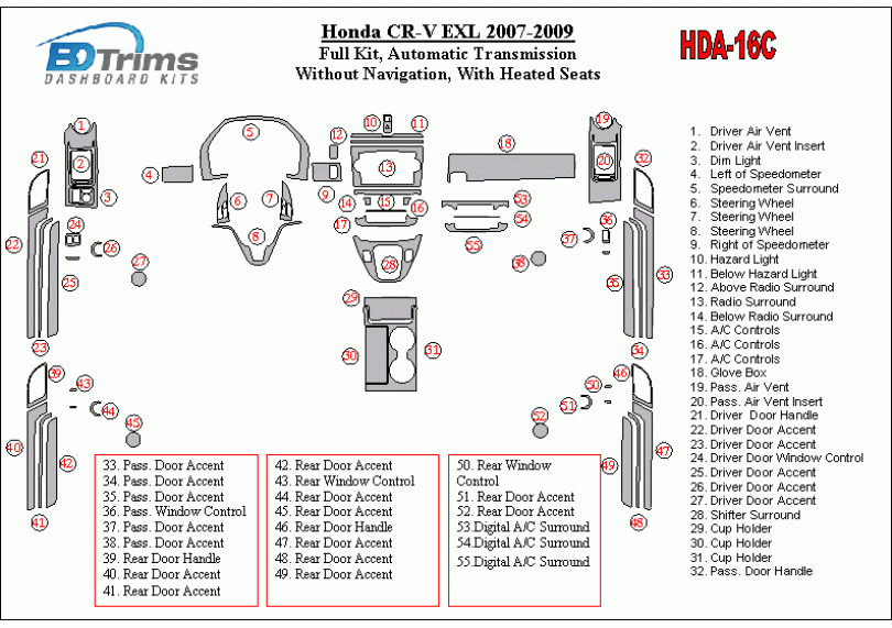 Full Kit, EXL Model, Automatic Transmission, Without Navigation, With Heated SeatsMaterials