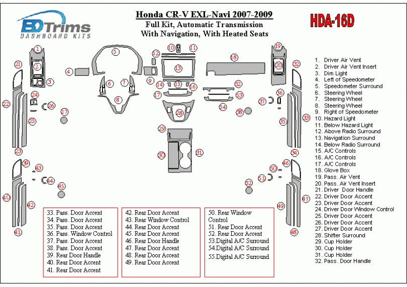 Full Kit, EXL Model, Automatic Transmission, With Navigation, With Heated SeatsMaterials