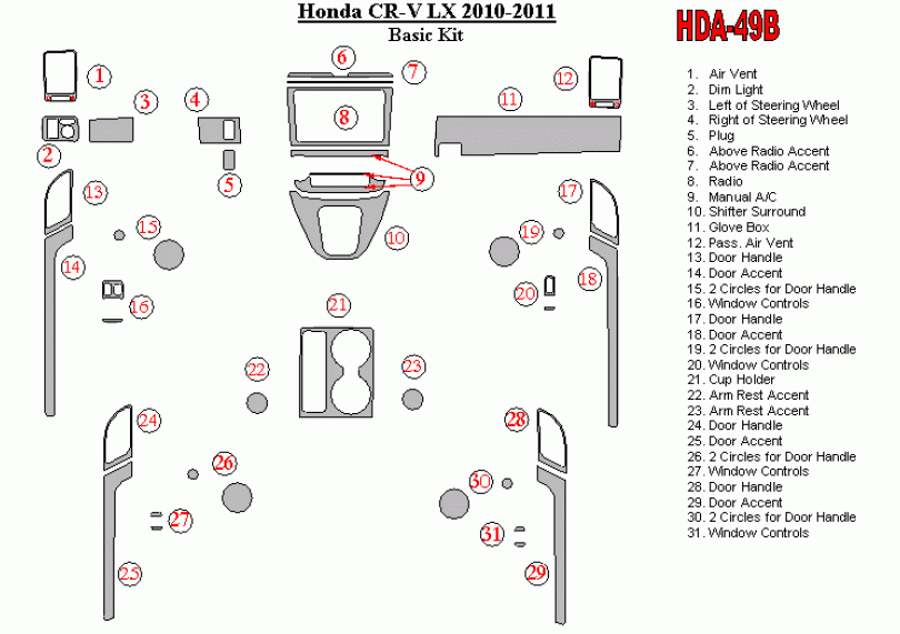 Honda CR-V 2010 - 2011 Dash Trim Kit
