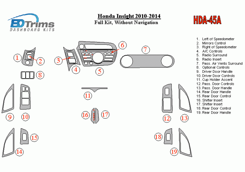 Honda Insight 2010 - 2014 Dash Trim Kit