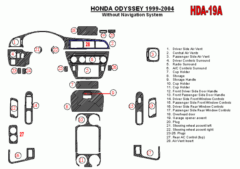 Honda Odyssey 1999 - 2004 Dash Trim Kit