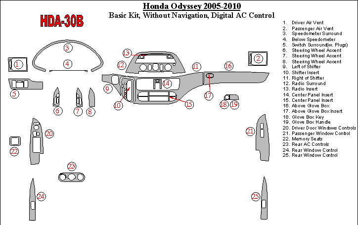 Honda Odyssey 2005 - 2010 Dash Trim Kit