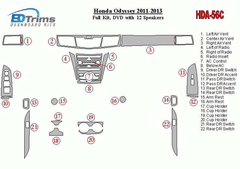 Honda Odyssey 2011 - 2013 Dash Trim Kit