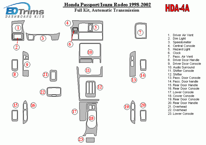 Honda Pasport 1998 - 2002 Dash Trim Kit