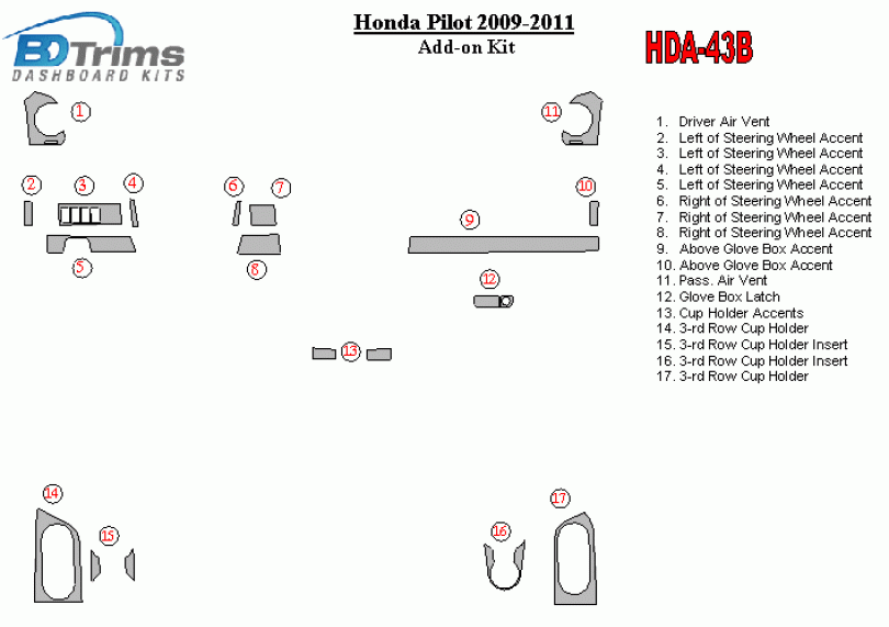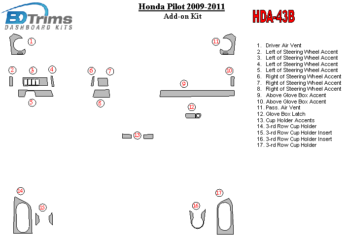 Honda Pilot 2009 - 2011 Dash Trim Kit