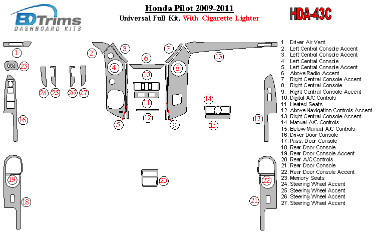 Honda Pilot 2009 - 2011 Dash Trim Kit