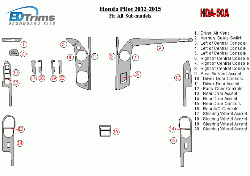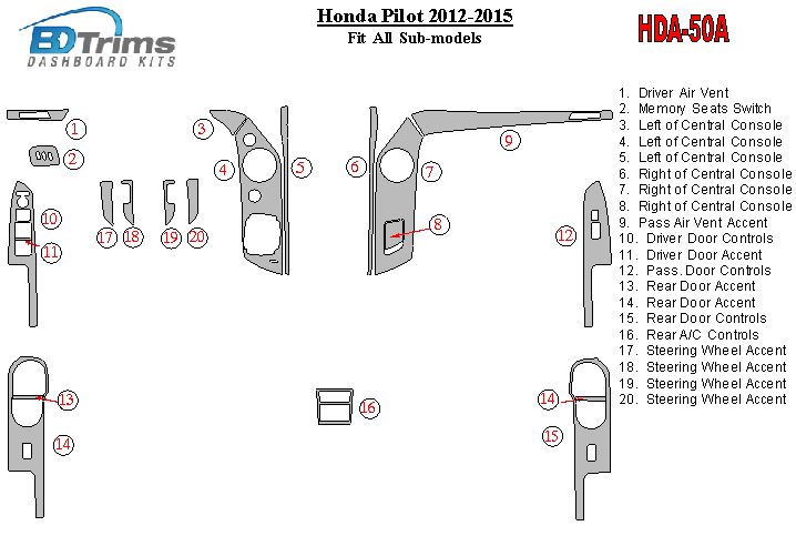 Honda Pilot 2012 - 2015 Dash Trim Kit