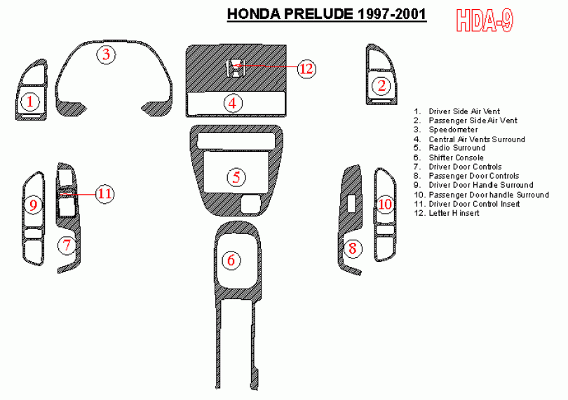 Honda Prelude 1997 - 2001 Dash Trim Kit