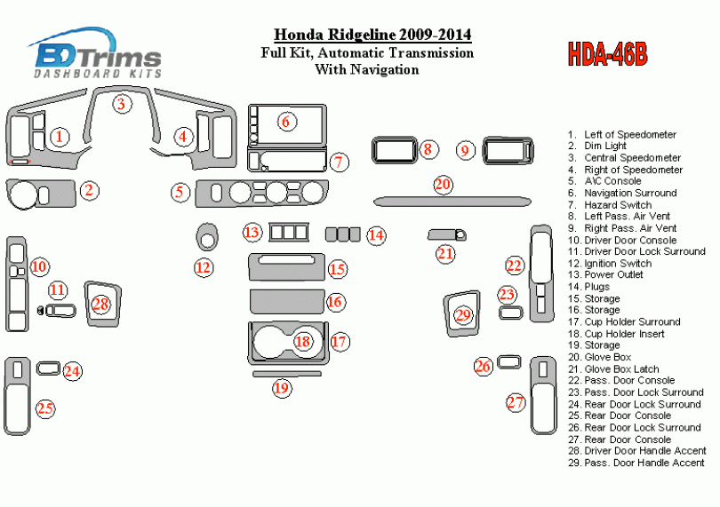Honda Ridgeline 2009 - 2014 Dash Trim Kit