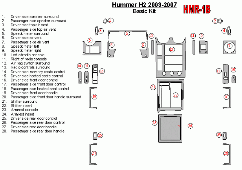 Hummer H2 2003 - 2007 Dash Trim Kit
