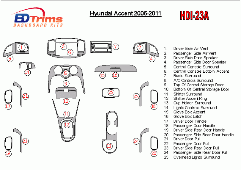 Hyundai Accent 2006 - 2011 Dash Trim Kit